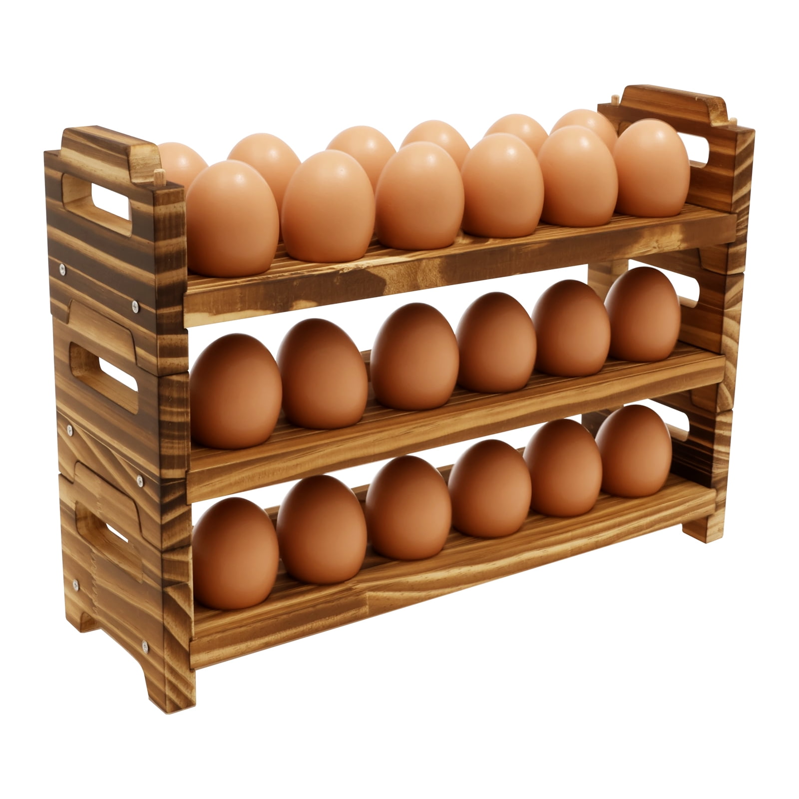 LINFANG Wooden Egg Holder 3 Tier Solid Stackable Collecting Rack Holding Up to 36 Fresh Egg for Home Kitchen Cabinet Fridge