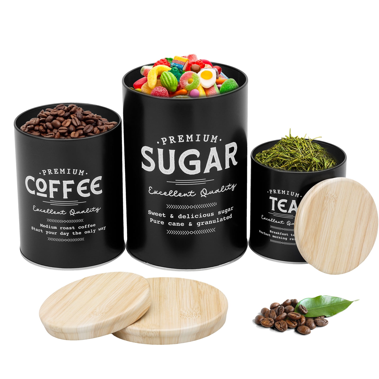 Metal Tea Coffee Sugar Canister Kitchen Container with Airtight Lid Stackable Food Pantry Container for Tea Coffee Sugar