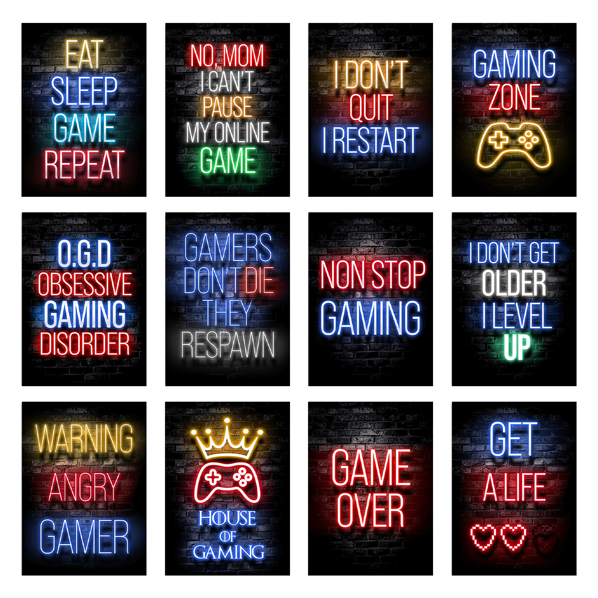 ODOMY Neon Gaming Themed 8??X 10??Poster 12 Pieces