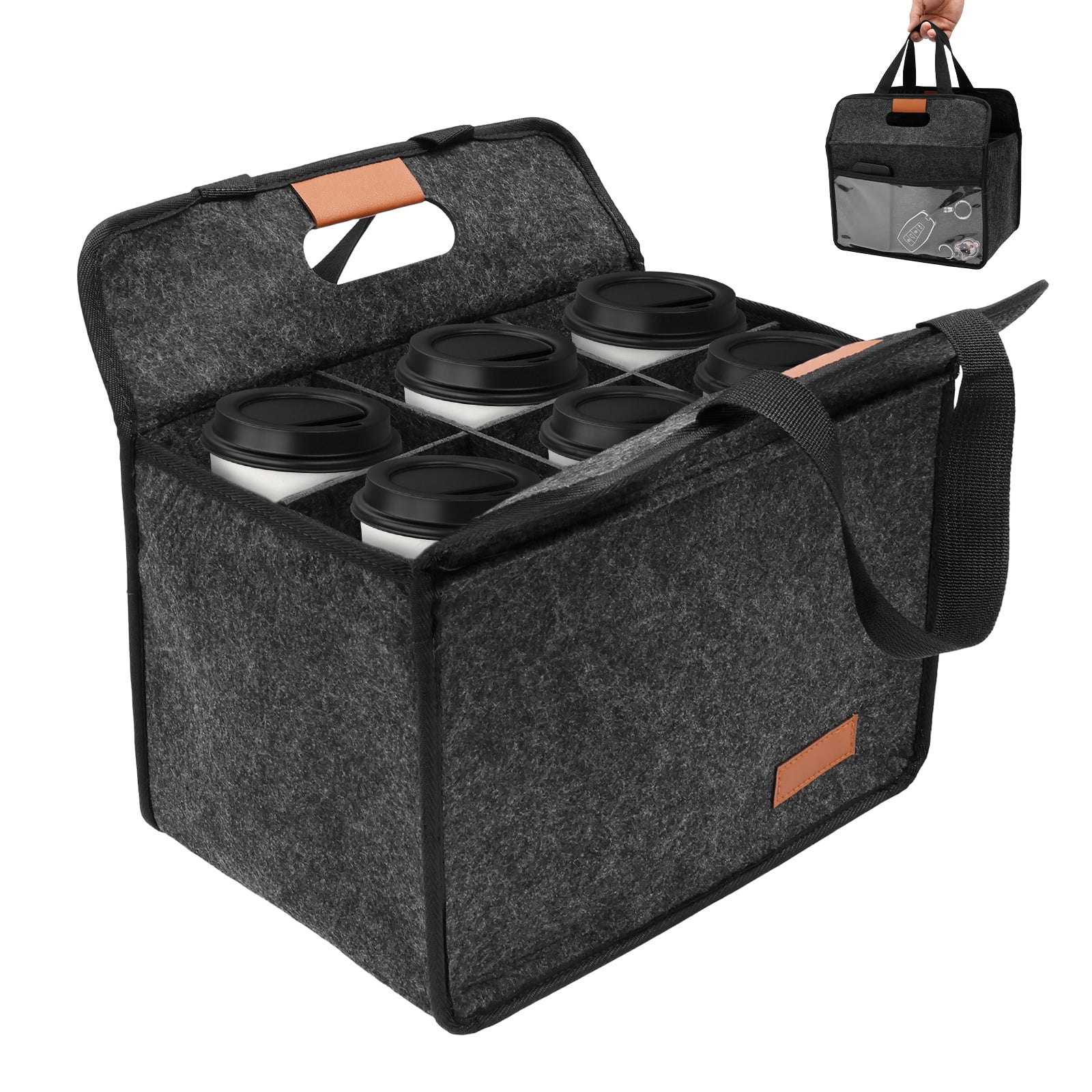 Portable Drink Carrier with 6 Cup Holder Reusable Organizer Tote Bag Coffee Cup Holder Carrier with Handle Detachable Compartment Insulation Plates for Office Party Picnic