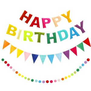 Pre Strung Felt Cloth Happy Birthday Banner Set Tear Resistant Colorful Birthday Bunting Felt Ball Garland for Fireplace Mantel Wall Window