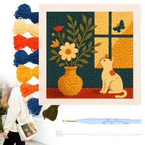 Punch Needle Kit for Adult Beginners-9.84×9.84 Inch Embroidery Starter Kit with Frame, Pattern, Punch Needle Pen, Yarn, Threader & Instructions, Handmade Craft Gift