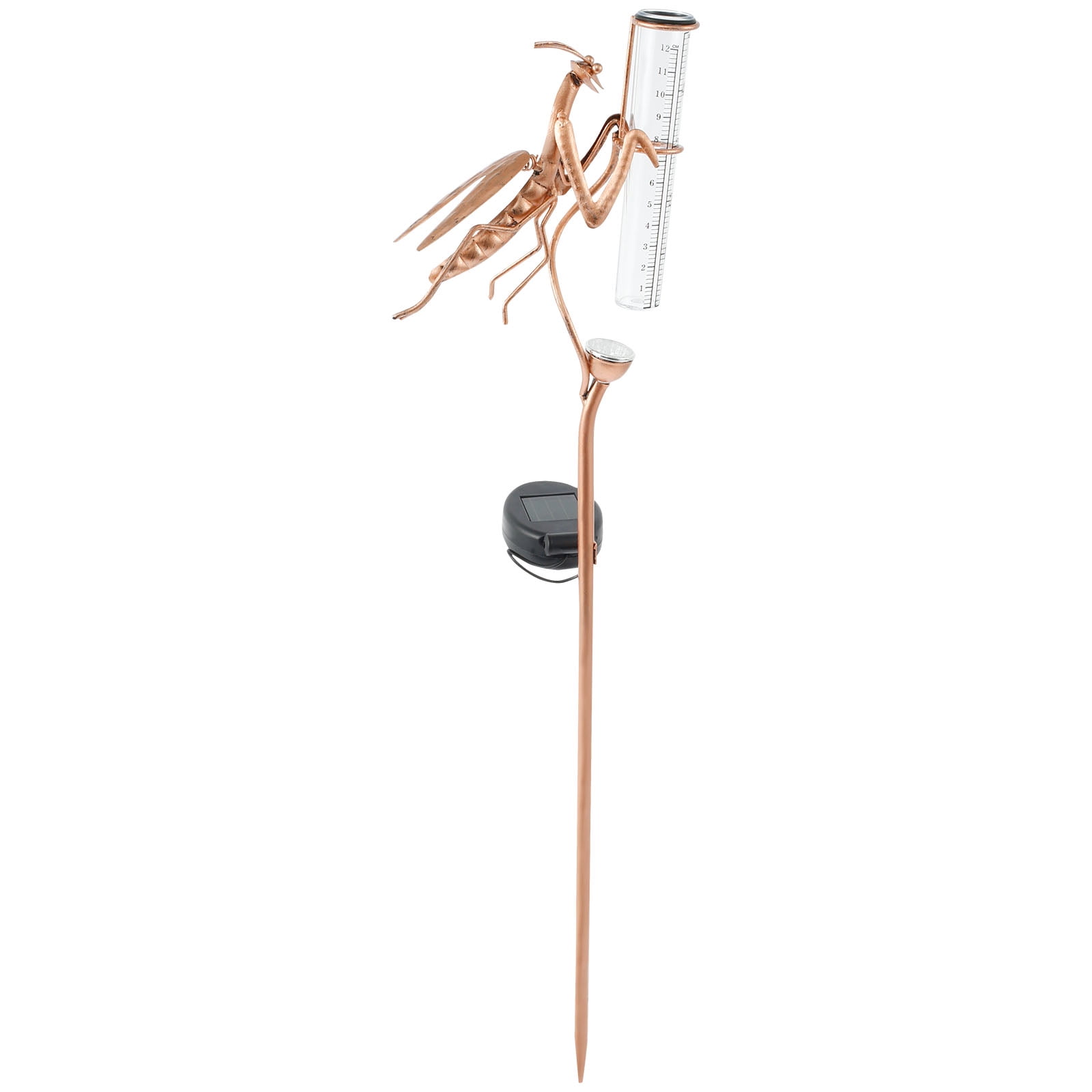 Rain Gauge Outdoor Metal Mantis Rain Gauges Solar Rain Measure Gauge with Lights Freeze Proof Acrylic Rain Gauge Decorative Garden Rain Measure Tool for Gardens Lawn