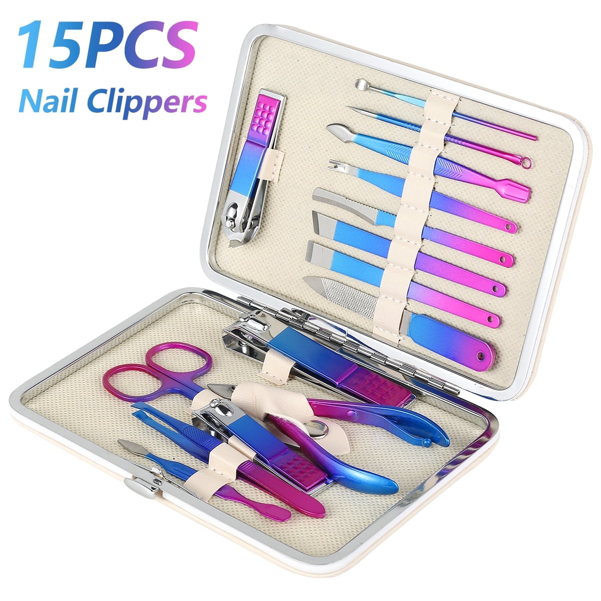 Tcwhniev 15-in-1 Manicure Pedicure Stainless Steel Professional Nail Clippers Kit
