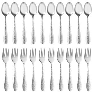 Tcwhniev 20 Pieces Kids Silverware Set, Stainless Steel Toddler Utensils, Hammered Style Kids Spoons and Forks, Children Cutlery Includes 10 Kid Spoons, 10 Kid Forks for Home Preschools