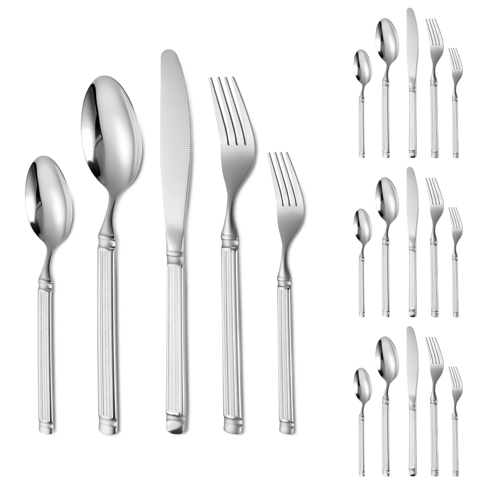 Tcwhniev 20PCS Silverware Set,Retro Royal Stainless Steel Flatware Utensil Sets for 4,Silver Luxury Cutlery Set Includes Forks Spoons Knives,Mirror Polished,Dishwasher Safe