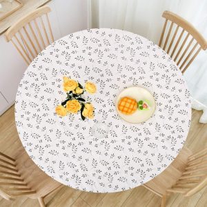 Tcwhniev Indoor Outdoor Patio Round Fitted Vinyl Tablecloth, Flannel Backing, Elastic Edge, Waterproof PVC Table Cover, Small Leaf Pattern for 6-Seat Table of 44-55???? Diameter