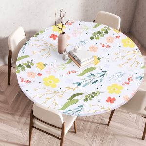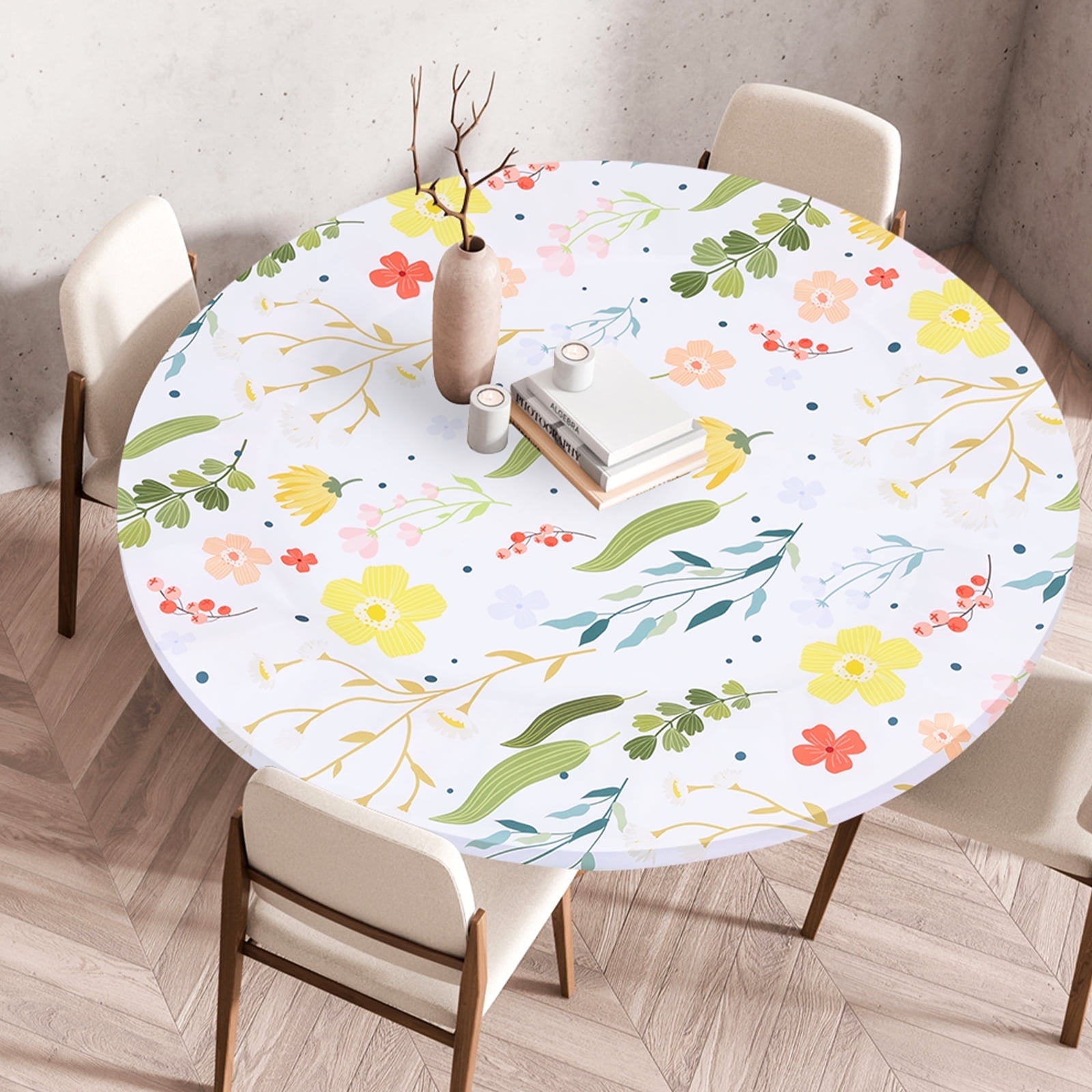 Tcwhniev Round Fitted Vinyl Tablecloth for 40 Inch Diameter, Elastic Edge, Wipeable Polyester Table Cover Decorative Protector Tablecloth for Indoor or Outdoor