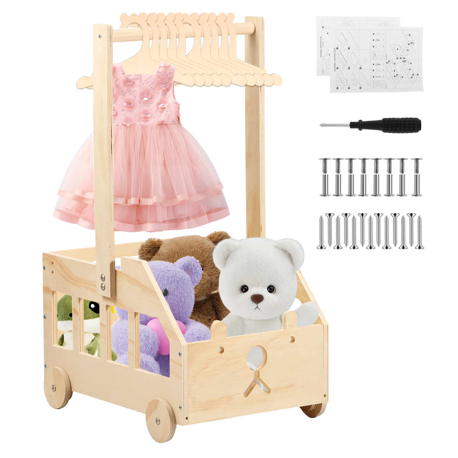 Wood Baby Shower Crate Closet with Wheels Bear Car Shape Baby Shower Crate with Handle DIY Baby Shower Basket Movable Baby Storage Crate for Pregnancy New Parent